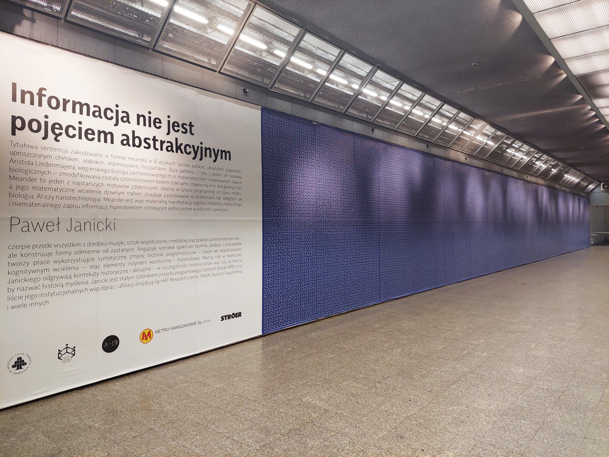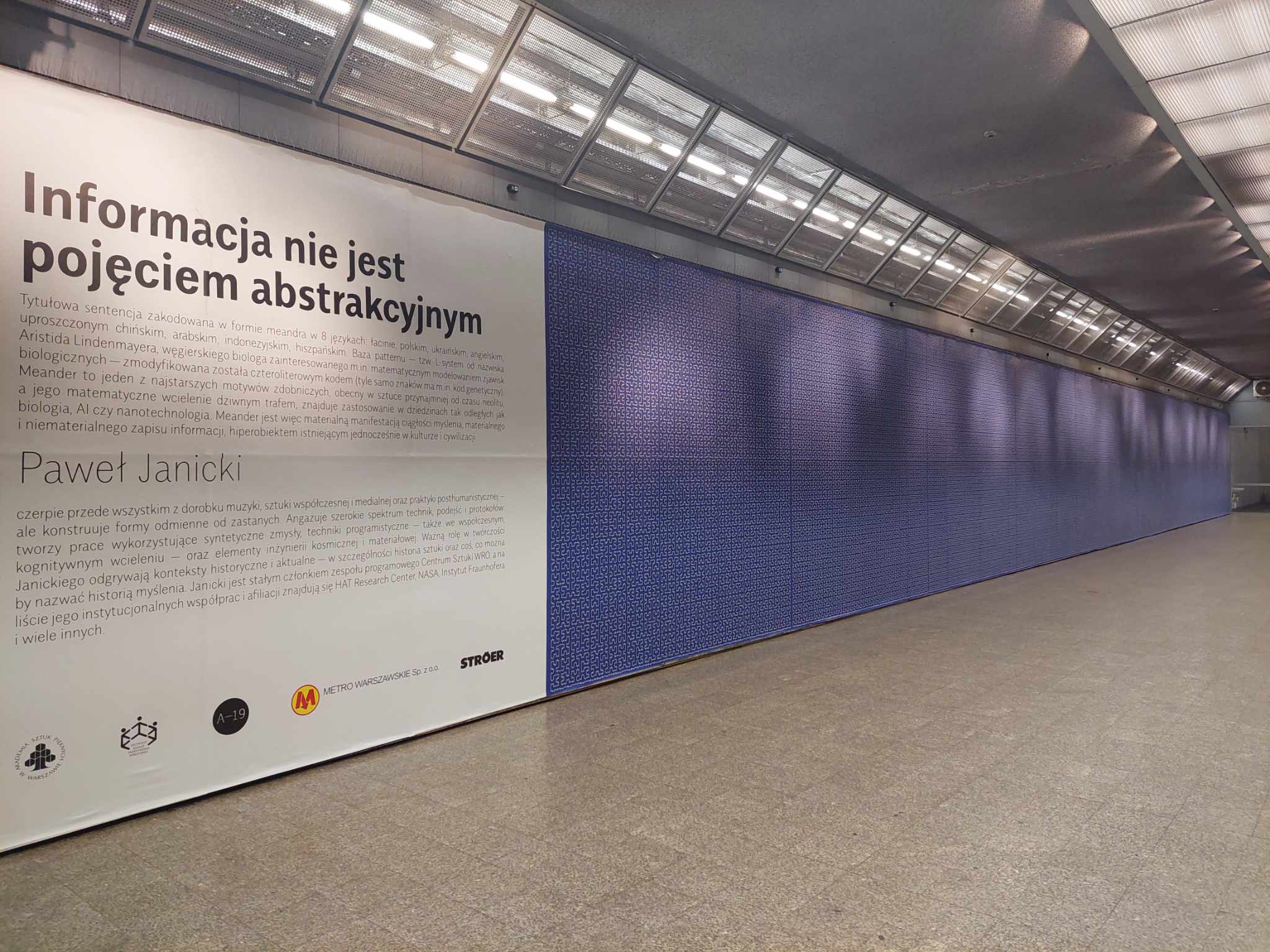 Thanks to the invitation and support of the team of Galeria A19 Marymont_metro dla sztuki project "Information Is Not an Abstract Concept" was exhibited at the Marymont subway station in Warsaw (Poland).