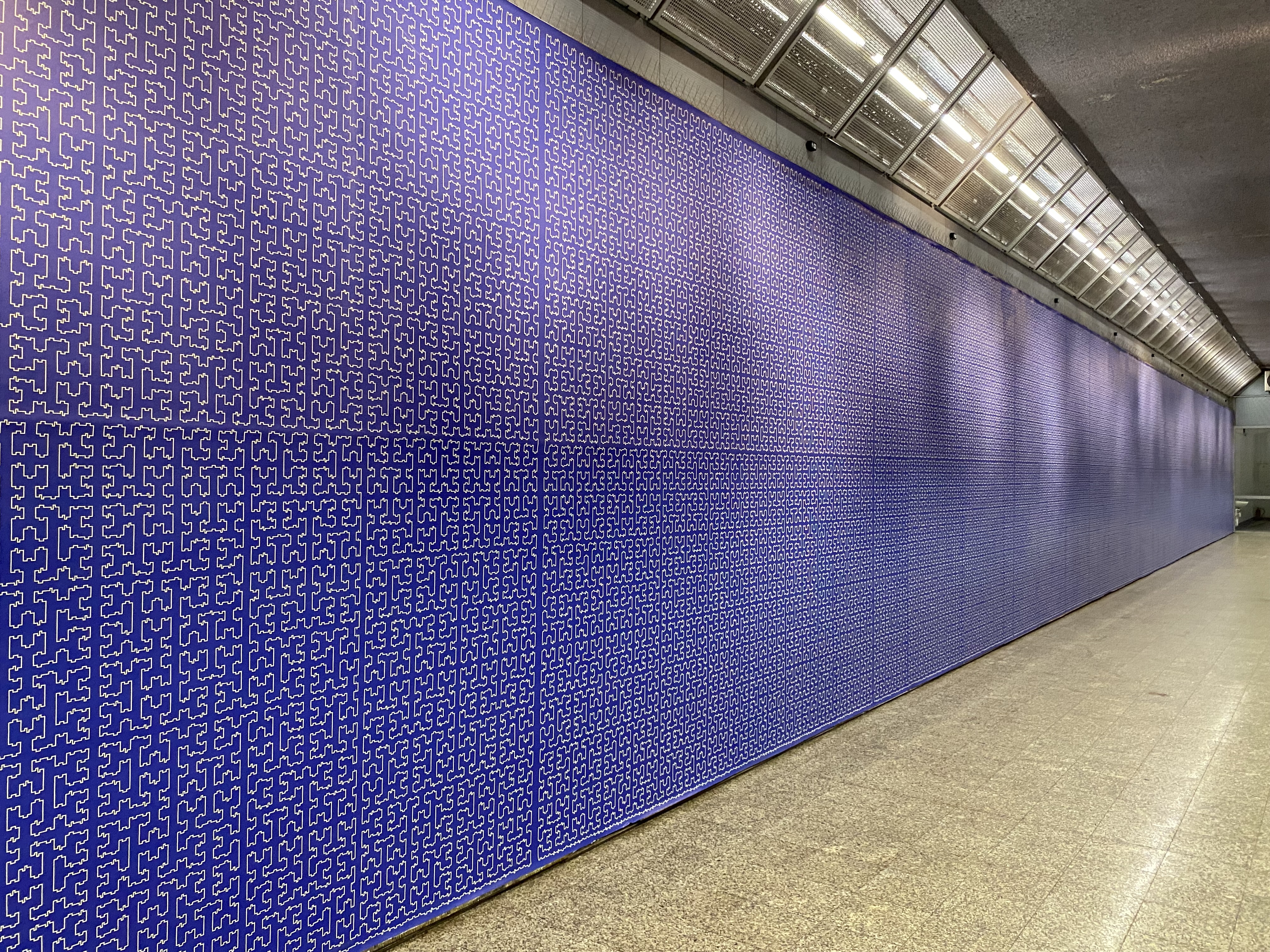 The title sentence is encoded in the form of a meander in 8 languages: Latin, Polish, Ukrainian, English, simplified Chinese, Arabic, Indonesian, Spanish. Pattern base - the so-called L-system named after Aristid Lindenmayer, a Hungarian biologist interested in, among others, mathematical modeling of biological phenomena - was modified with a four-letter code (the genetic code has the same number of characters). The meander is one of the oldest decorative motifs, present in art at least since the Neolithic period, and its mathematical incarnation, strangely enough, finds application in fields as distant as biology, AI and nanotechnology. Meander is therefore a material manifestation of the continuity of thought, a material and immaterial record of information, a hyperobject existing simultaneously in culture and civilization. Special thanks: Prof. Piotr Welk (Academy of Fine Arts in Warsaw) and the Fraunhofer IWU team (Dresden).